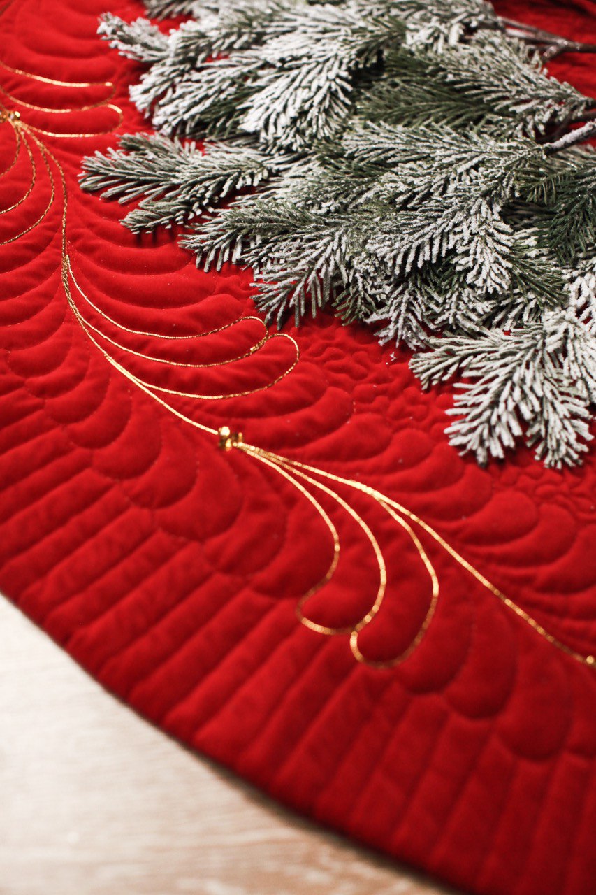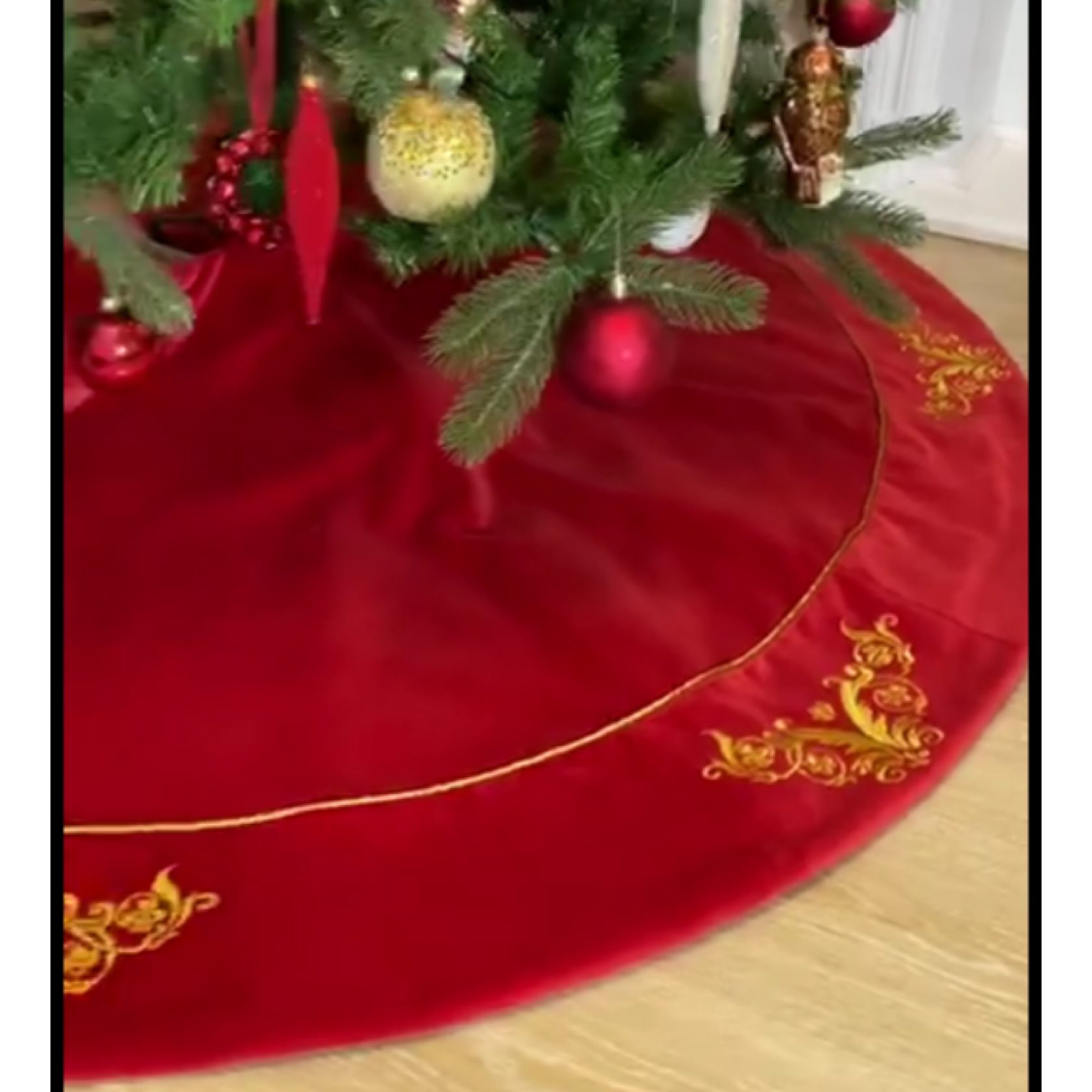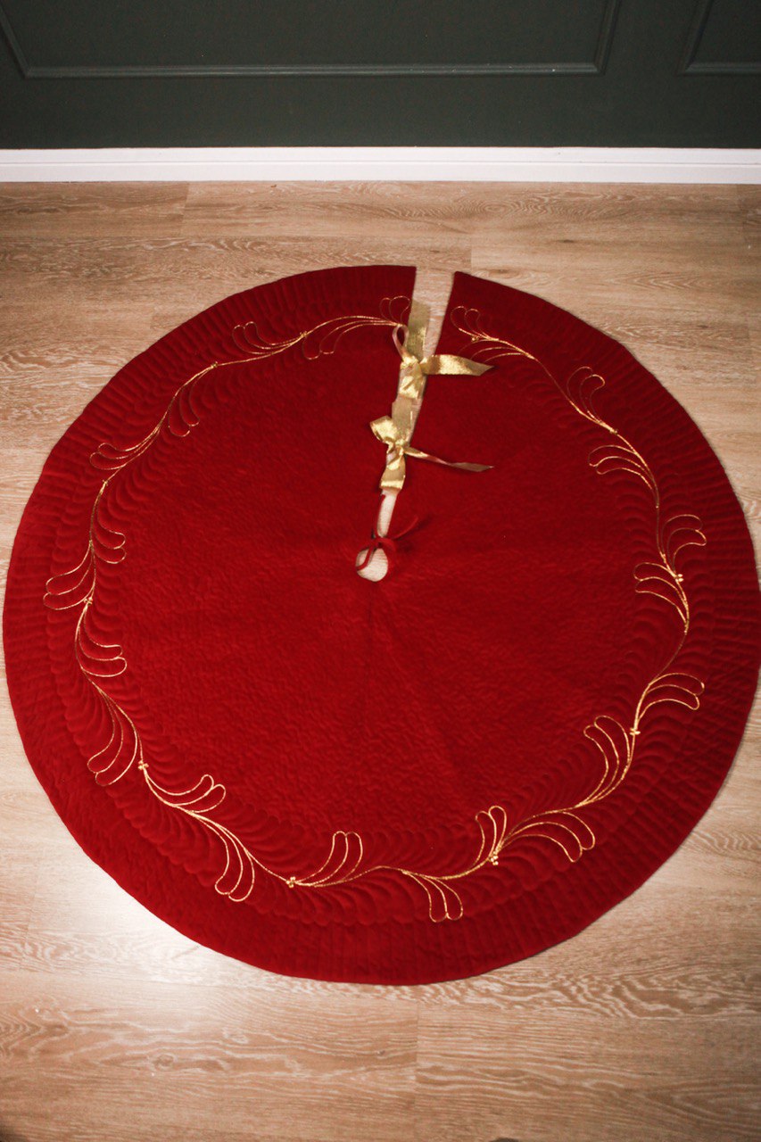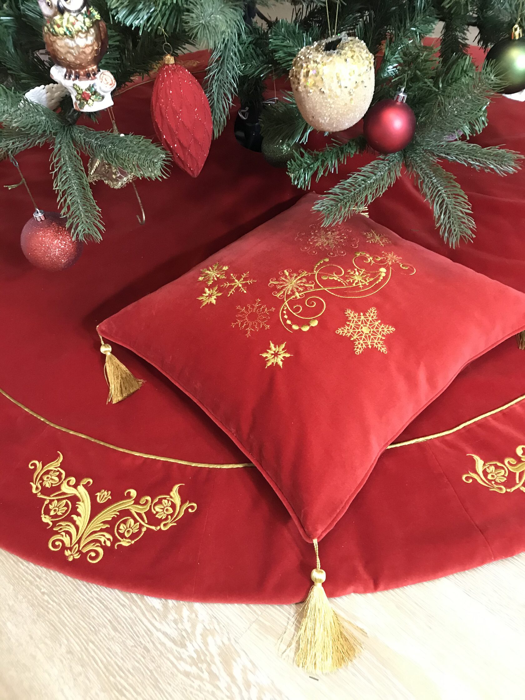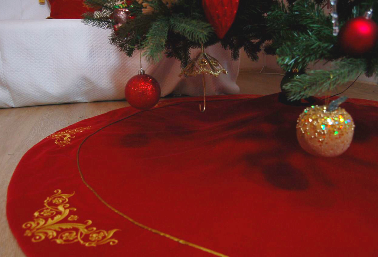 Юбка под елку ''Пуансетия'' с синей каймой Ручная работа Стоимость зависит от размера