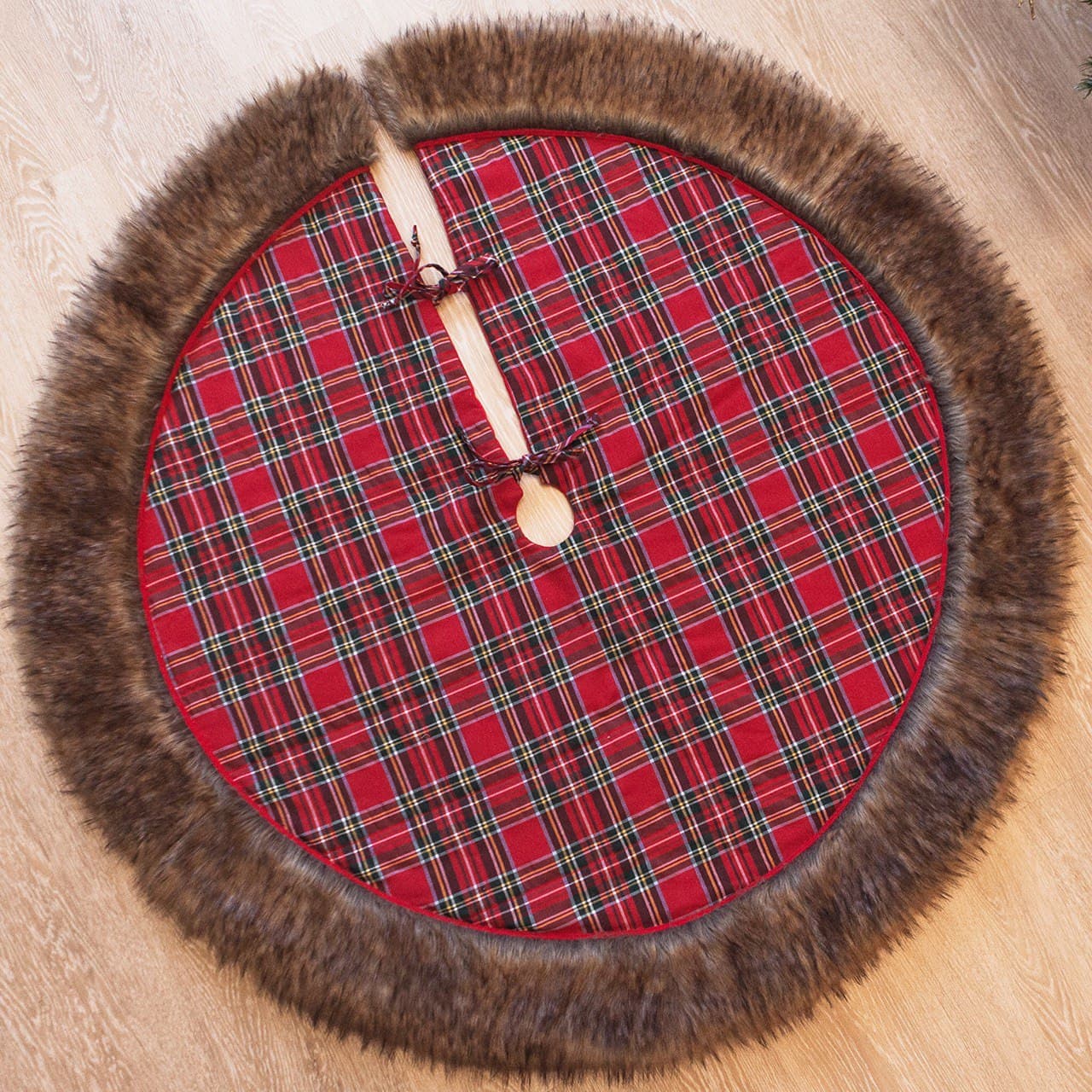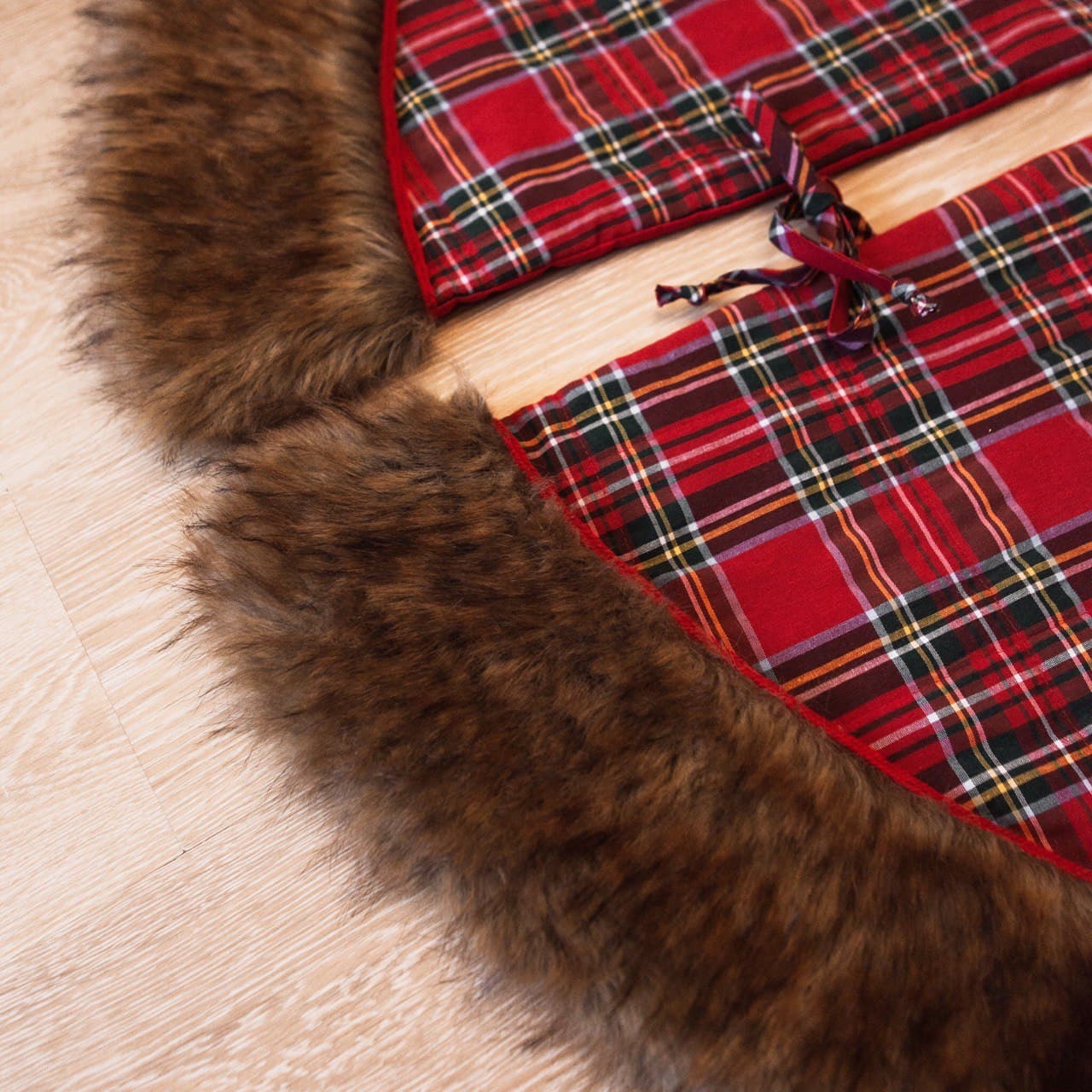 Юбка под елку в красную клетку "тартан" По всей кайме расположена меховая опушка из очень качественного длинноворсового меха. Юбка на подкладке, с наполнителем. Пышная и объемная, отлично держит форму и закрывает все технические крепления елки. D-100см-9800р D=!20см-11200р