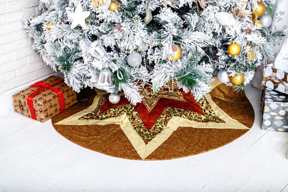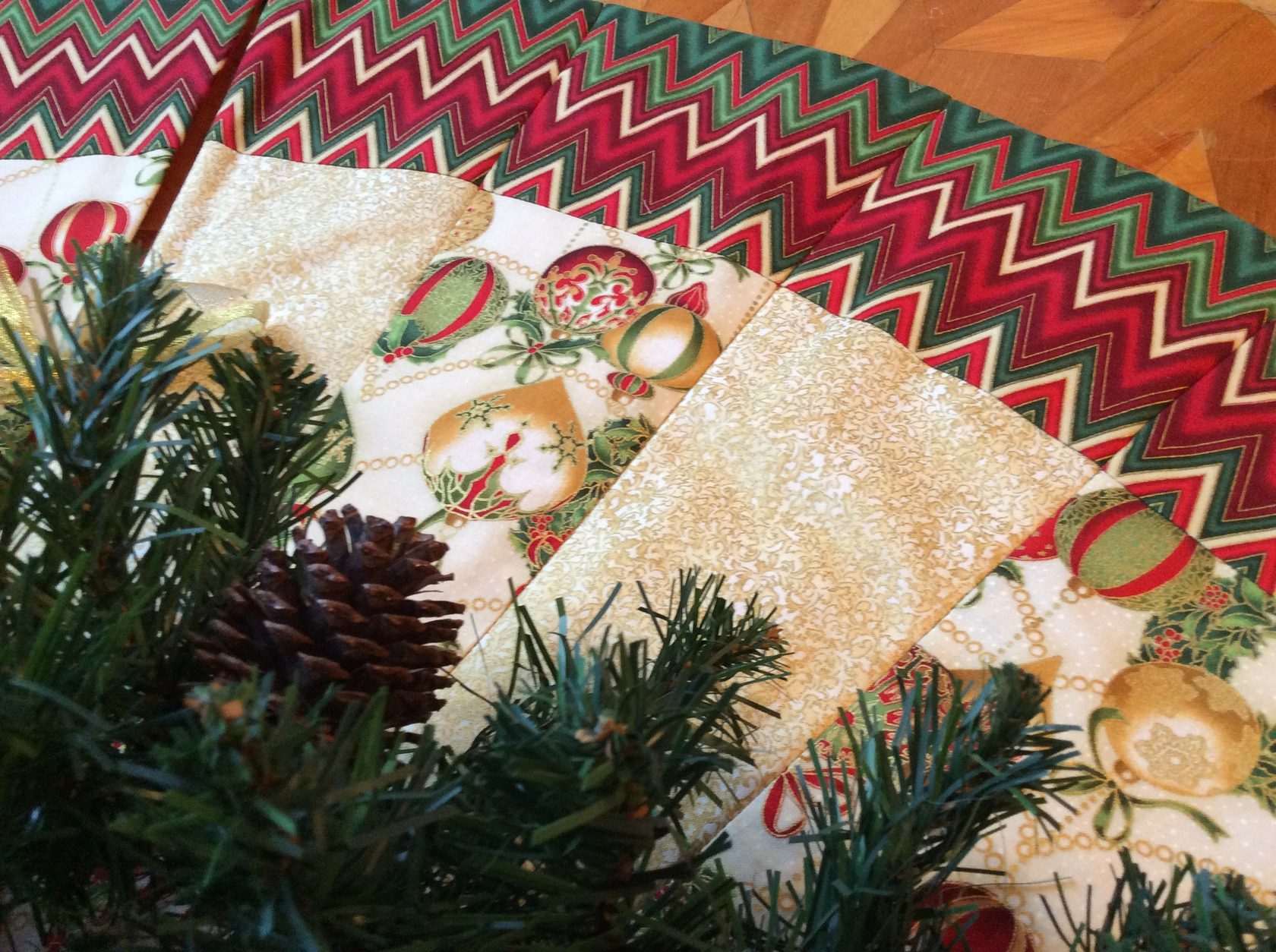 Коллекционный хлопок с золотым напылением. На подкладке, С наполнителем Изготовлена в стиле "Печворк" из коллекционного японского хлопка. Пышная, объемная-отлично держит форму под елкой. D-120cv