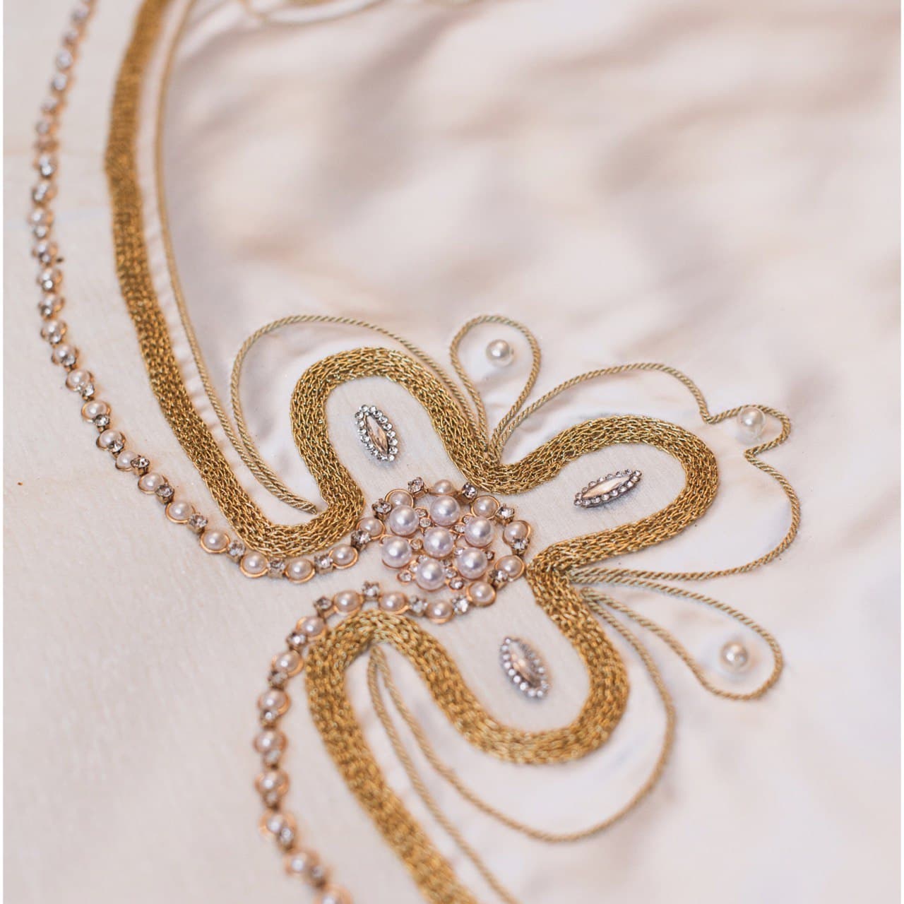 Белая шелковая юбка с каймой из японского хлопка с золотым глиттером. По всей поверхности художественная стежка За счет объема хорошо держит форму под елкой D-100см-7900р D-120см-8700р