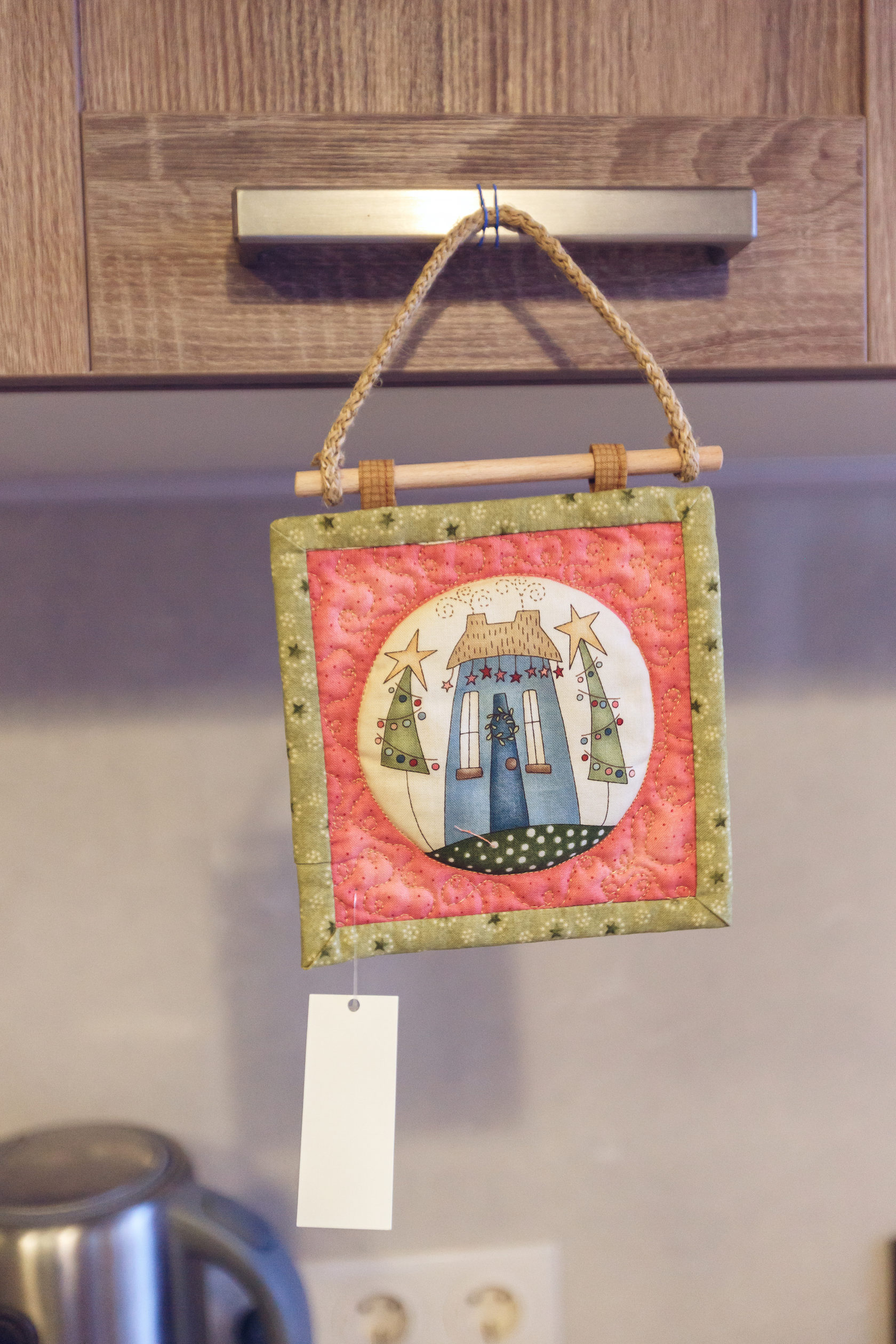 Японский хлопок Художественная стежка по всей поверхности. Кант подшит вручную. Деревянная палочка, джутовый шнур Отличный Новогодний подарок для подруг Набором выгоднее
